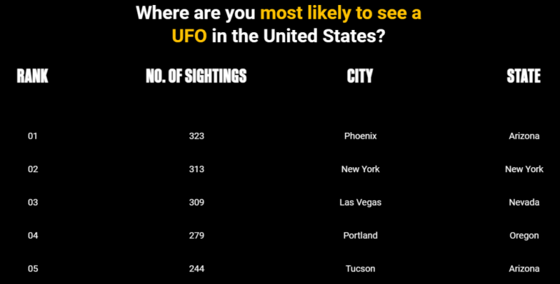 — Extraterrestrial adventure may be in your own backyard. You can use this tool to find where you can increase your odds of spotting an UFO in each state: https://www.betus.com.pa/casino-guide/usa-ufo-encounter-2024/